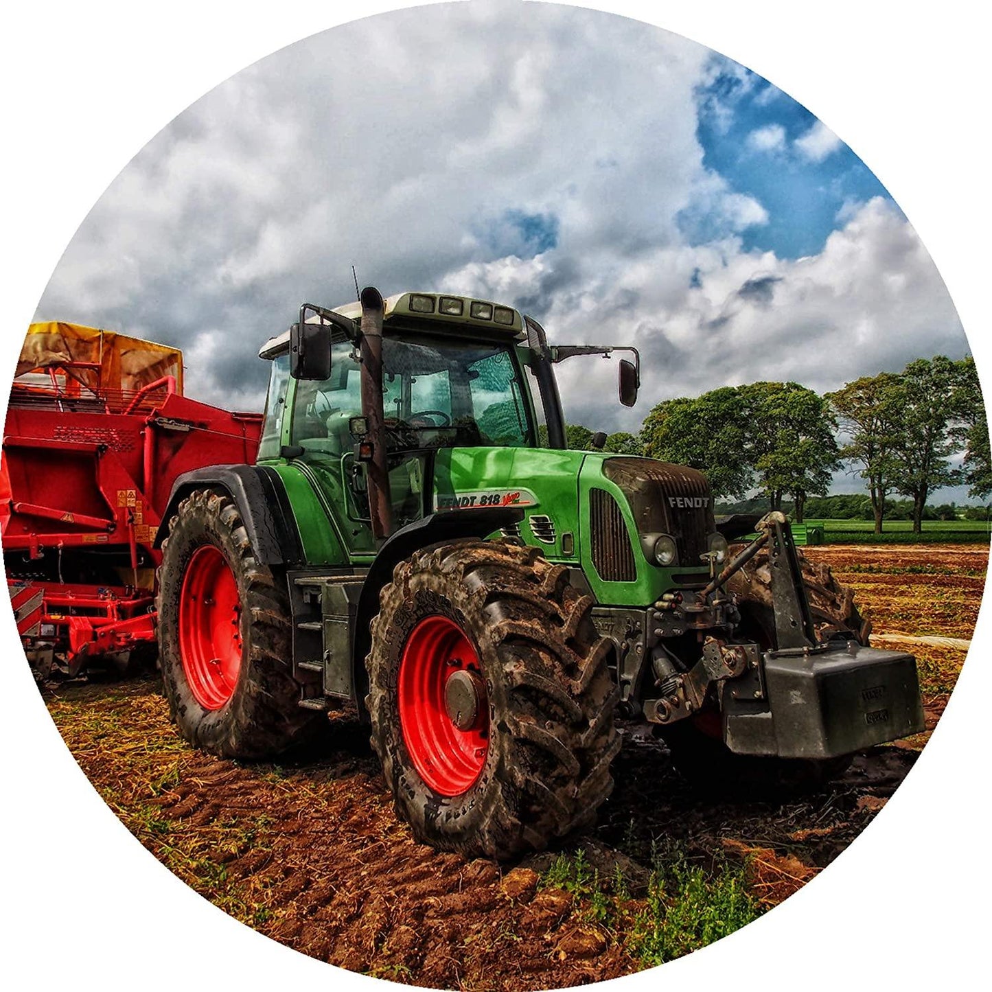 Essbarer Tortenaufleger Trecker auf dem Feld. Mit einem großen Trecker als Hauptmotiv. Individualisieren Sie Ihre Torte mit unseren passenden Tortenauflegern für viele Themen. Einfach auf die vorbereitete Torte legen, kurz andrücken und fertig. Alle Informationen zur Anwendung der Tortenaufleger finden sich auch auf unserer Hilfeseite und natürlich auf der beiliegenden Bedienungsanleitung. Bei feuchten Torten bitte das Zuckerpapier wählen. Auf Oblatenpapier erscheint der Druck etwas aufgehellt. Tolle-Tortenaufleger wünscht viel Spaß auf Ihrer nächsten Party. Produktinformationen Durchmesser 20cm. Je nach Wahl aus Oblaten-Papier oder Dekor-Zuckerpapier.